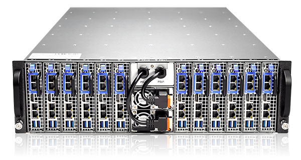 U钱包国际(中国)的S312-S24R刀片服务器集群系统3U机箱内包括12个E3 处理器刀片服务器,单个处理器带有2个视频处理核心,单个刀片可配置64G内存,2个6TB硬盘,整个系统可配置144TB存储容量,对建立基于云或 hadoop技术的视频处理系统,具有极高的性价比。服务器内部结构如下: